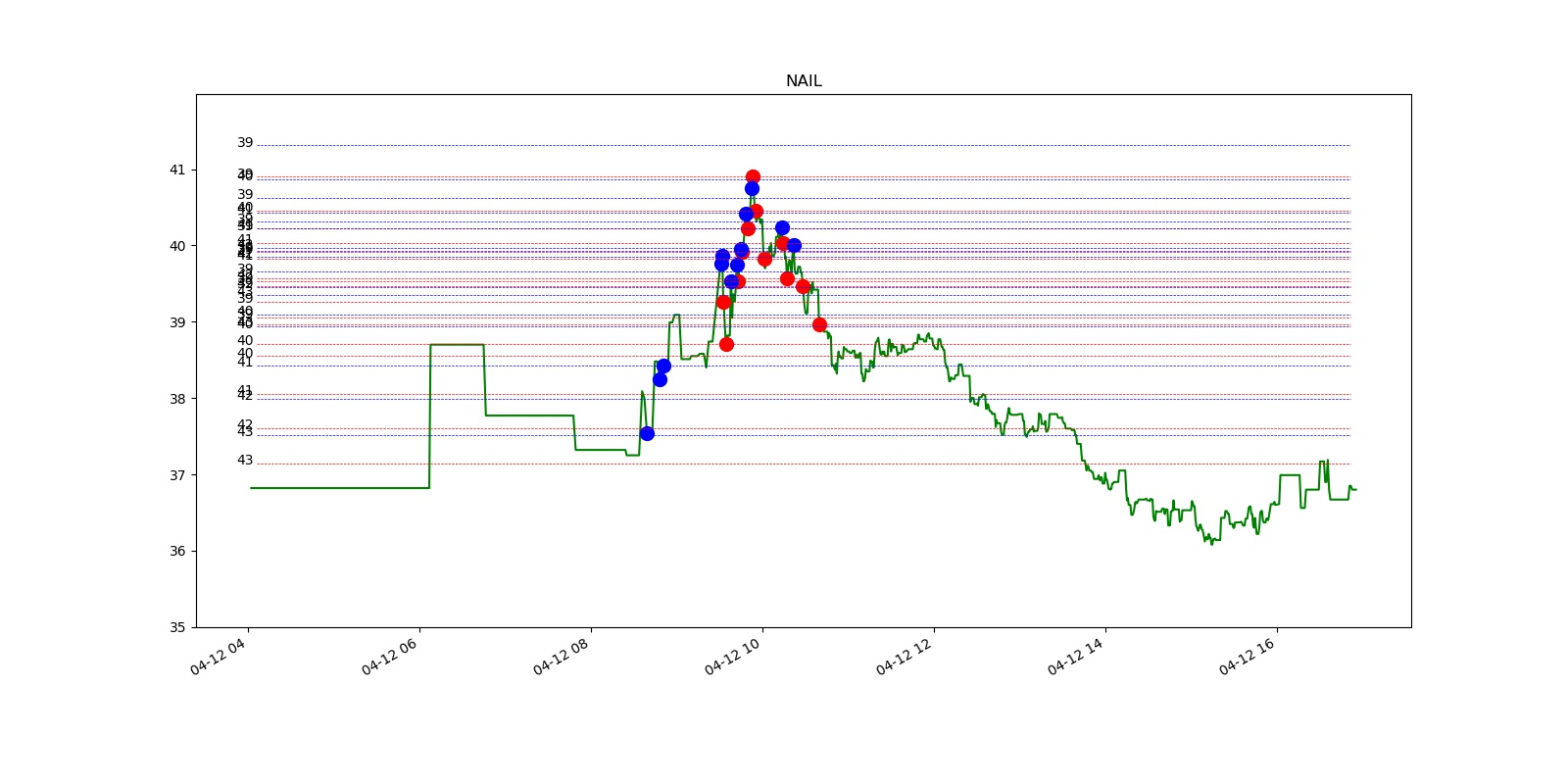 NAIL의 오늘 최소값은 36.08, 최대값은 40.90 입니다.