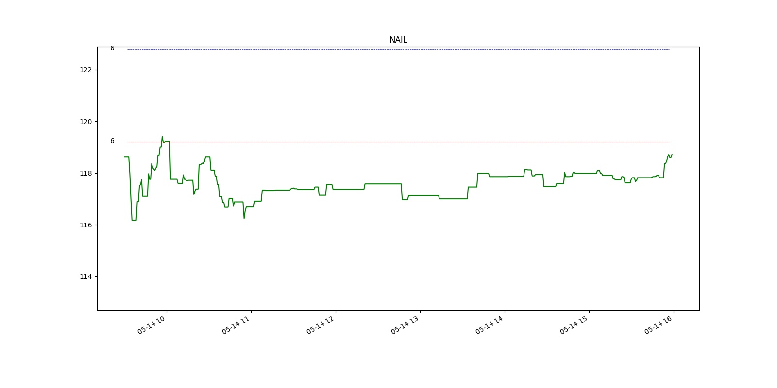 NAIL의 오늘 최소값은 116.17, 최대값은 119.41 입니다.