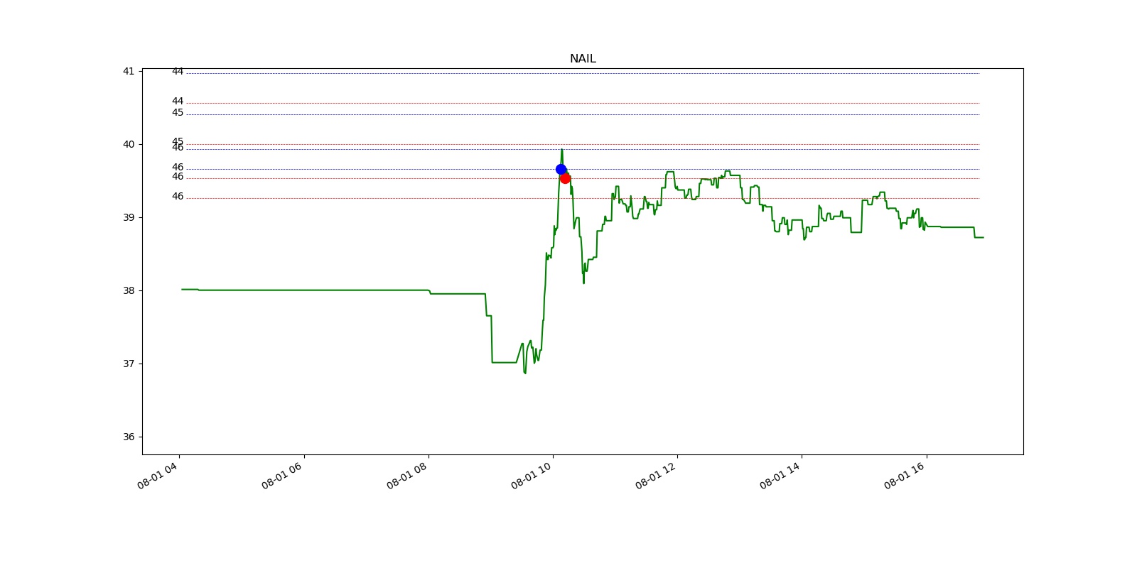 NAIL의 오늘 최소값은 36.86, 최대값은 39.93 입니다.